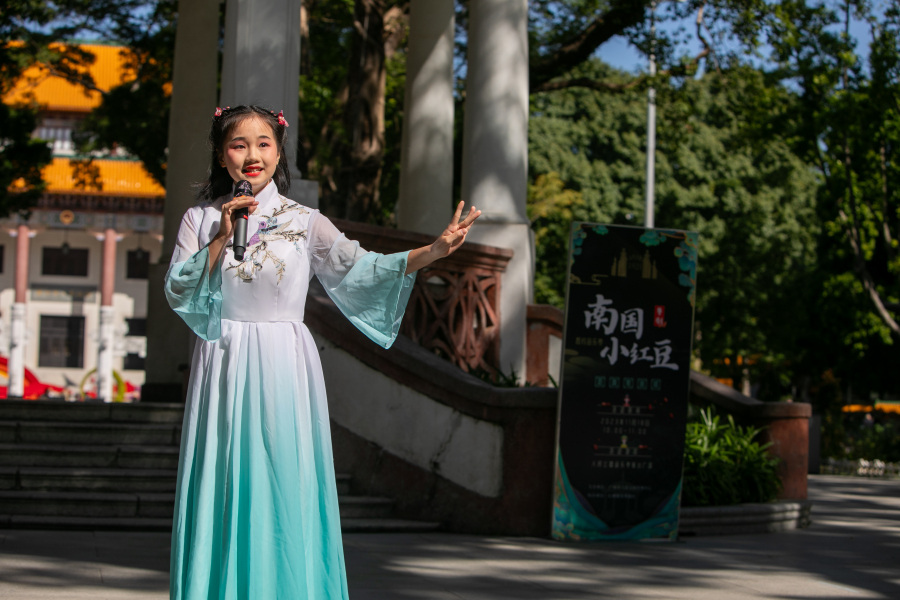 《悲歌满江红》《双枪陆文龙》……11月18日上午,人民公园“相约音乐亭”举办南国小红豆专场欣赏音乐会,一群萌娃来到音乐亭唱粤剧。小小粤剧传承人可谓是“人小鬼大”戏很足,让粤剧传承更具活力。