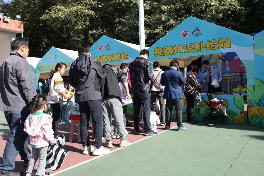 “根据您的纳税情况,您应该……”在“税费知识补给站”摊位前,税务工作人员们现场为居民面对面精准答疑,将税费优惠政策送到群众手中,让税法知识深入人心,现场还有网红青蛙来到现场,为市民派送税费知识,引得小朋友们争先恐后与其互动。其中,市民杜小姐为惠民日活动点赞,她表示平日参加这类活动机会不多,但儿子特别喜欢今天的活动,今天带着儿子学到了垃圾分类、税费、创文的知识。