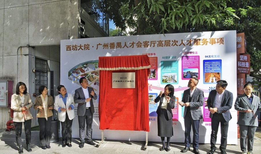 揭牌仪式上,出席活动的领导共同为西坊大院·广州番禺人才会客厅揭牌,西坊大院成为继番禺图书馆之后第二个番禺人才会客厅。在座谈会上,番禺区人社局推介《番禺区人才服务卡实施方案》,高层次人才代表分享了在番禺的工作体会,与会人员就人才工作进行了交流。