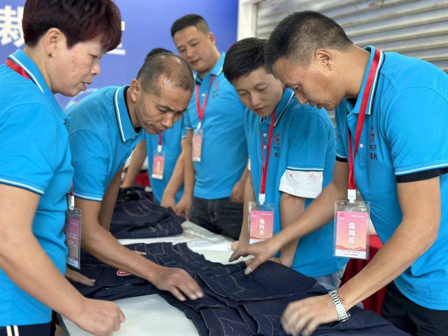 “这里多了条线头得扣分”“48号这条裤最平整”“腰线这里有点不平”……这是11月20日举行的2023年新塘镇第一届缝纫工职业技能竞赛现场,裁判们正在后台展开评审的一幕。据悉,本次竞赛由广州市增城区新塘镇人民政府主办、广州市职大职业培训学校承办,50余名来自不同企业的选手,在新塘牛仔城广场同台竞技。