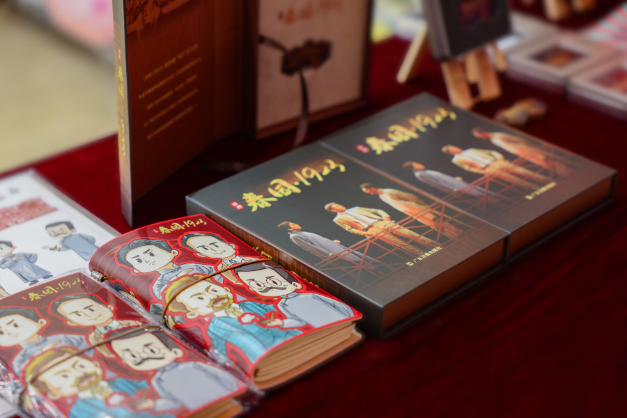 在本轮演出现场,《春园·1923》系列演出衍生品悉数亮相:囊括了原创设计的定制U盘+主题刊物的精装套书,收录了4K高清全剧视频、话剧剧本、编剧创作谈、主演分享、精美剧照图集等丰富内容,带观众揭秘台前幕后故事,一览《春园·1923》全貌;A6尺寸的手账本随身便携,Q版人物形象跃然红色封面上,兼具艺术感的同时又不失反差萌,活页设计实用满分,内嵌门票收纳夹页,便于记录观演点滴。开合潇洒、收纳便利的书法扇,绢布仿红木材质自带复古感,双面图案设计实用又耐看。还有冰箱贴、书签、贴纸等诸多文创好物,琳琅满目。