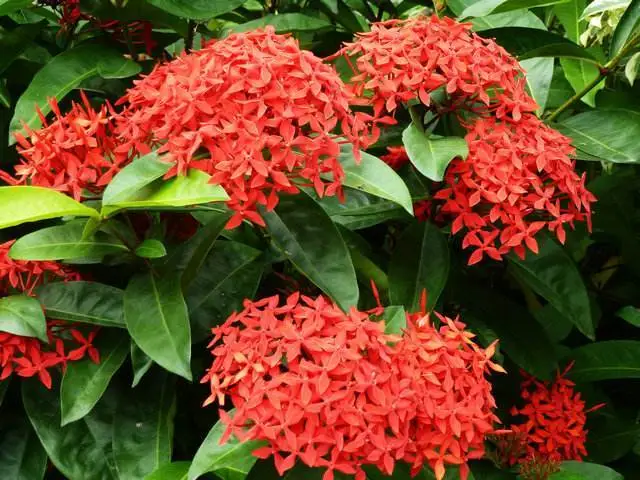 推荐理由:龙船花为华南乡土植物,在本土做观赏植物开发利用较早,而后远传海外,品种不断丰富,受到世界热带地区的广泛欢迎和应用。繁花时节,红似火、橙如霞,花浮于叶面上,象征热情与积极向上的精神面貌。