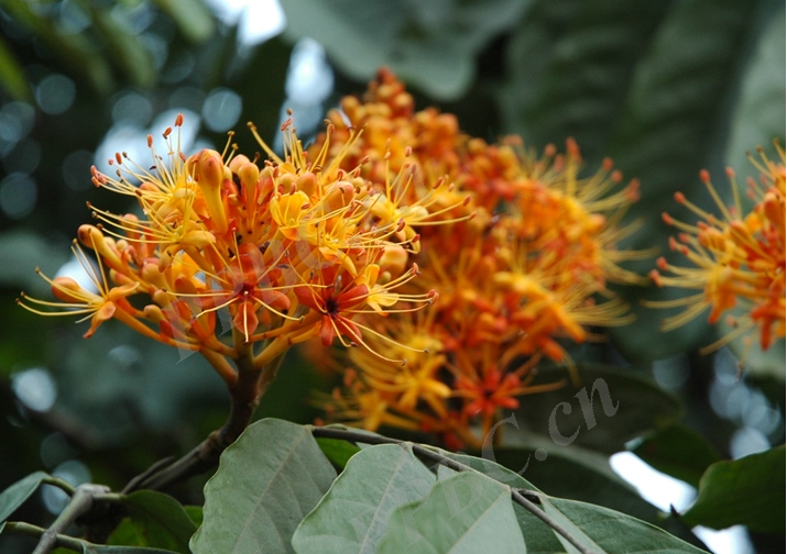 形态特征:常绿乔木,花期4—5个月,果鲜红色,树形高大,有浓密遮荫的性能,作为景观树具有岭南特色,别具一格。