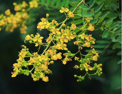 形态特征:常绿乔木,铁刀木生性强健,因其木材坚硬如铁、刀斧难入,故得名铁刀木。花黄色,花期10—11月,可用作庭园树、行道树及防护林树种。