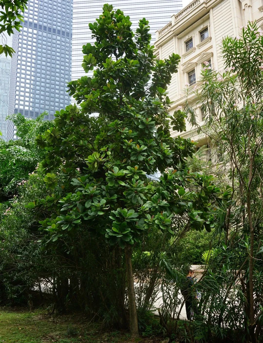 形态特征:常绿灌木或小乔木,四季常绿,为常见的南沙区乡土乔木,花初开黄色,随开放时间会变橙再变红,可在公路、道路两旁列植作行道树,或在庭园中丛植作庭荫树。