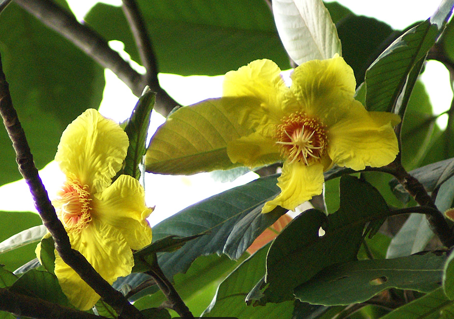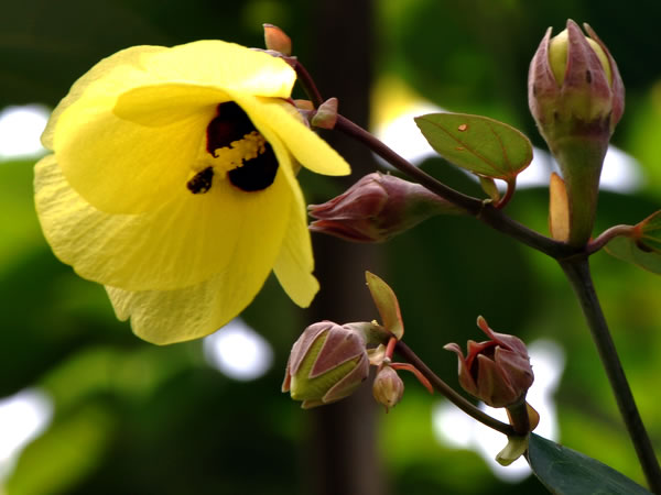 形态特征:常绿乔木,高达20米,花大美丽,花序腋生,花黄色,花期4—5月,是良好的庭园绿化和观赏树种。