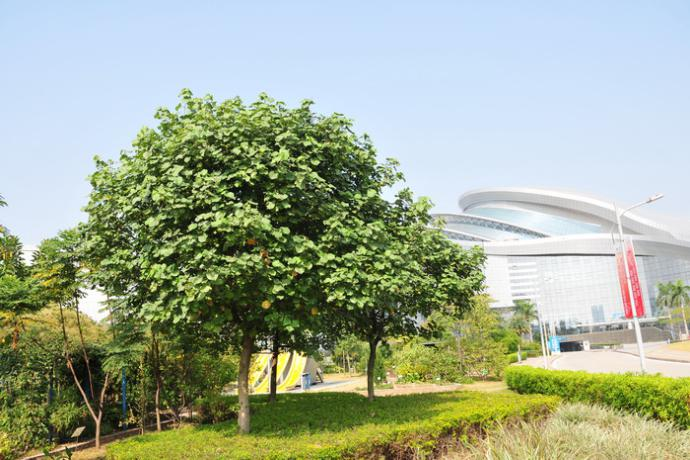 推荐理由:海陆两栖红树植物,可用于海岸线防风固沙、城市道路绿化,适应台风气候,极具雨林特色。银叶树是红树林的主要造林树种和滨海地区城乡绿化美化的乔木型景观树种,被誉为“滨海卫士”,列入《世界自然保护联盟濒危物种红色名录》易危树种,为南沙区珍贵特色树种。