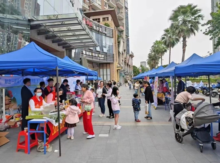 10月,为积极响应广州市番禺区住建局关于开展第二届爱心义卖活动的号召,招商蛇口广州公司、广州招商荟、招商积余联动招商局食品、社区居委、广大业户和合作伙伴,在广州金山谷花园、尚层、领仕、雍景湾等多个项目开展公益助农市集、振兴乡村爱心义卖等活动。