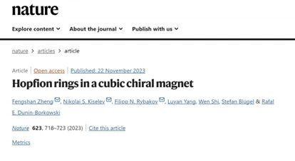 突破性发现!华南理工大学郑风珊教授联合德国于利希研究中心Nikolai S. Kiselev博士和瑞典乌普萨拉大学Filipp N. Rybakov博士等学者,共同在晶体中直接观察到磁霍普夫子(Hopfion)。相关成果发表在《自然》(Nature)上。其中,郑风珊教授为通讯作者兼第一作者,Nikolai S. Kiselev和Filipp N. Rybakov为共同通讯作者;华南理工大学为第一完成单位。