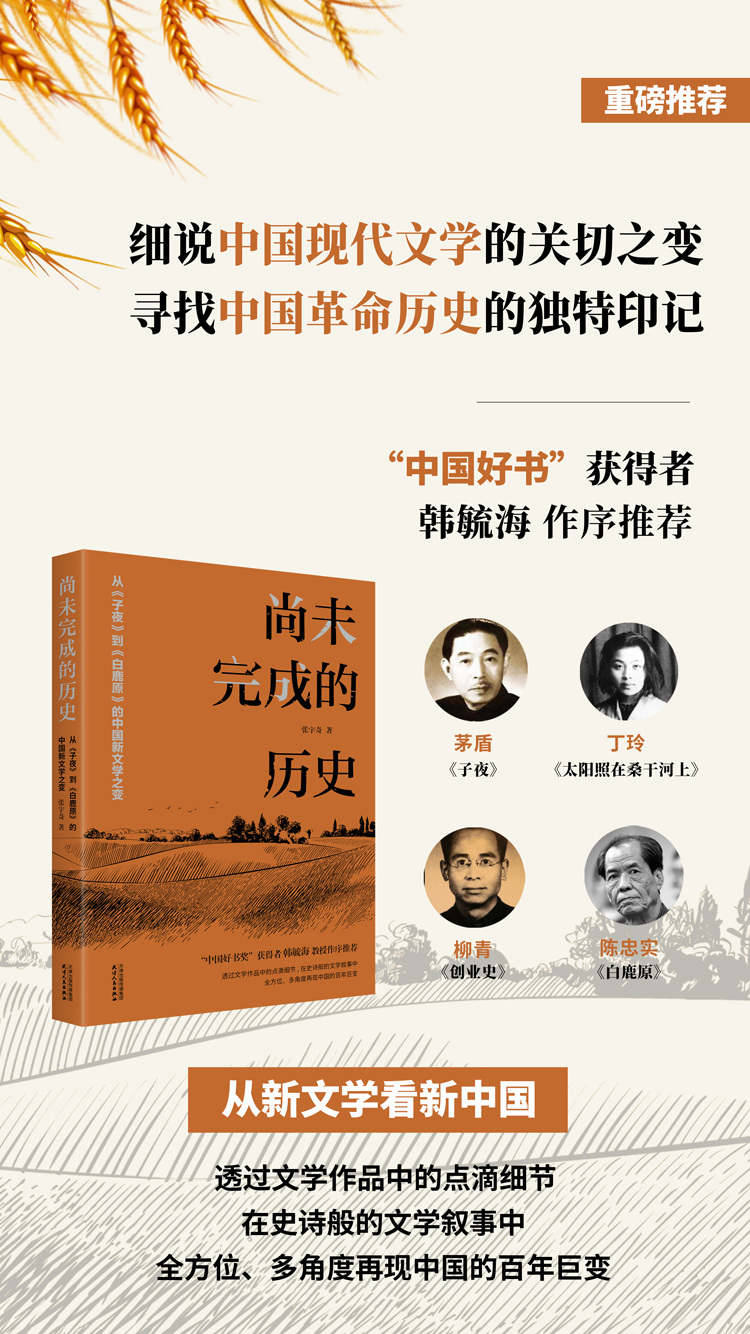 日前,北大文学博士张宇奇的新作《尚未完成的历史:从<子夜>到<白鹿原>的中国新文学之变》由天津人民出版社公开出版发行。