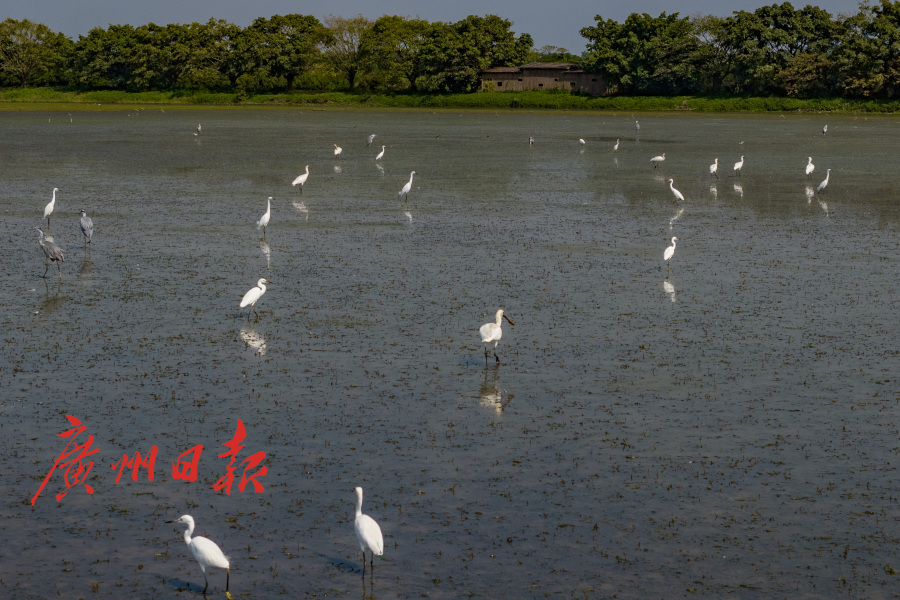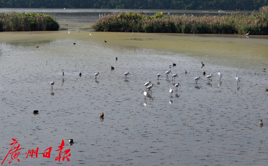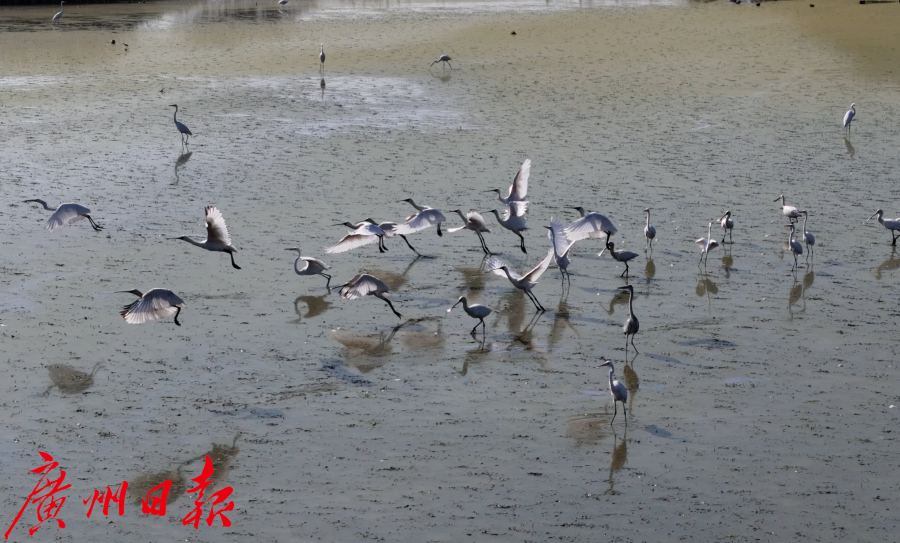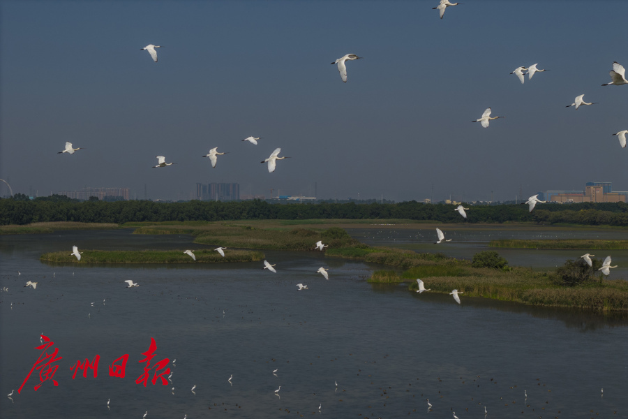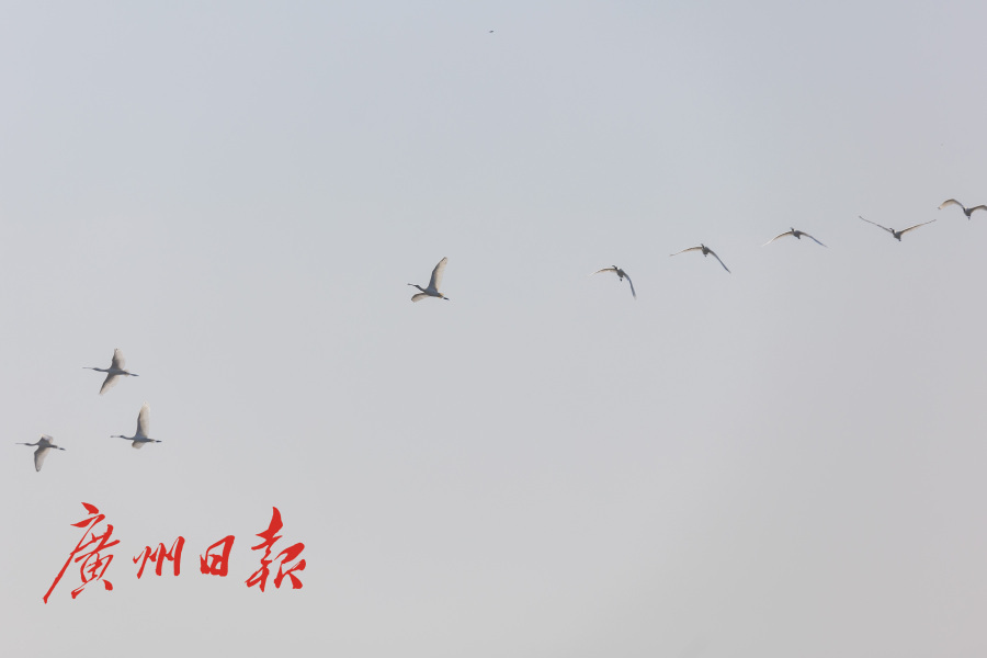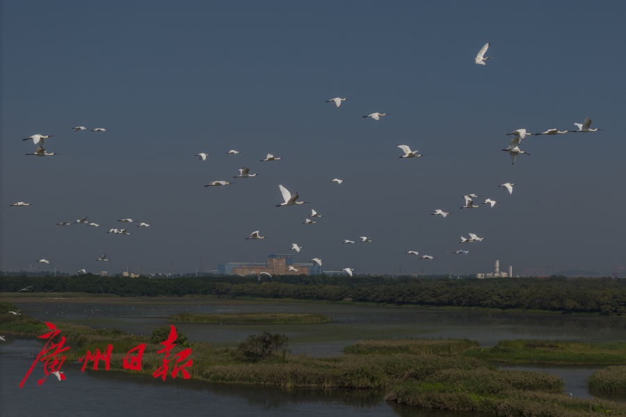 天气渐冷,广州又迎来了候鸟迁徙季节。昨日上午,本报独家直击“鸟中大熊猫”黑脸琵鹭再现广州,拍摄到20多只黑脸琵鹭成群结队飞翔及觅食的珍贵画面。