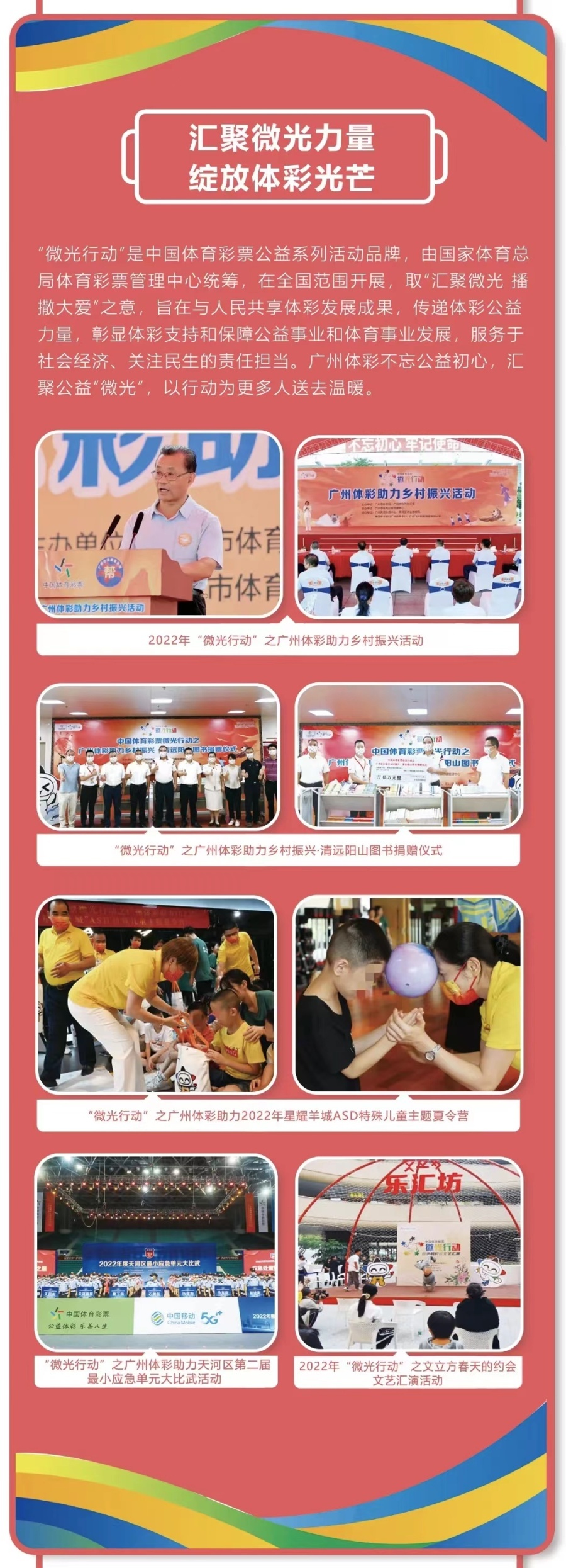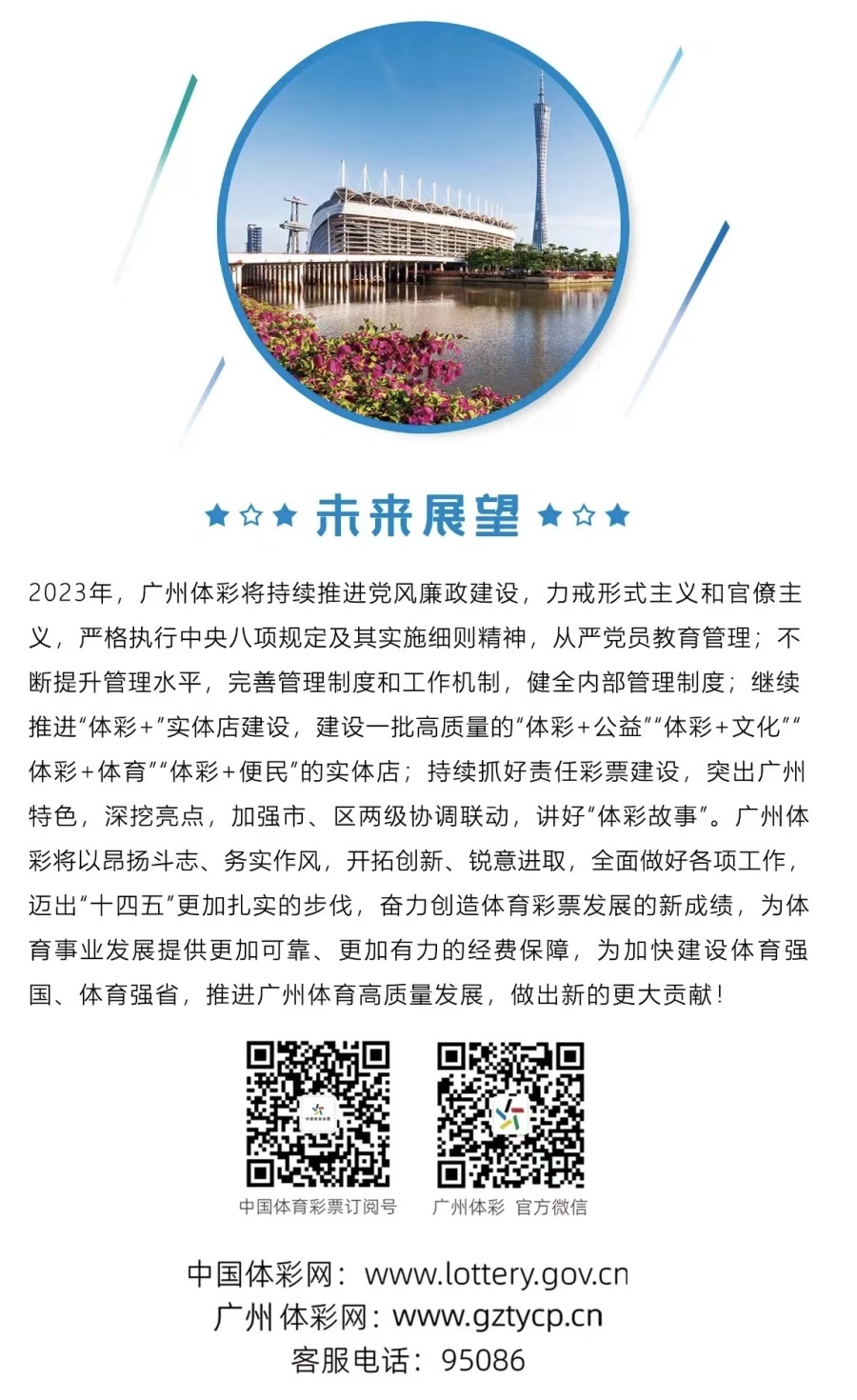 日前,广州体彩正式发布《广州市2022年体育彩票社会责任报告》,汇聚微光、温暖民心、践行公益使命、坚持责任先行,展现了广州体彩去年的社会责任建设的成果,这也是广州体彩连续第2年发布社会责任报告。下面就让我们来一图读懂这份报告。