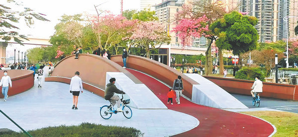 A pedestrian bridge on Yuejiang Road, Guangzhou, Guangdong province. [Photo provided to China Daily]