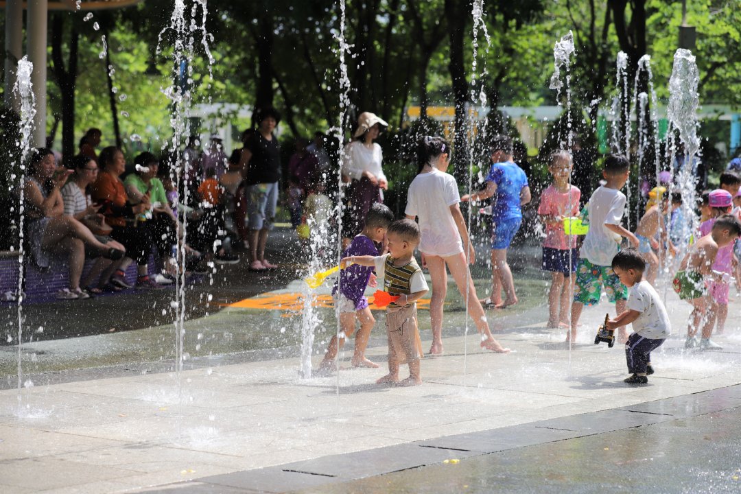 △夏日,孩子们在儿童公园内玩耍。(图/广州日报·新花城记者:高鹤涛 通讯员: 陈韵盈)