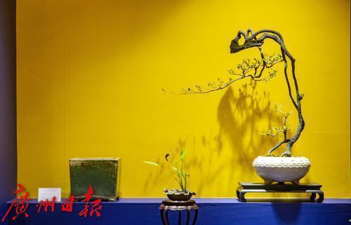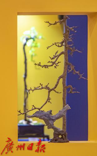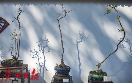 “素仁格”盆景艺作品在墙上投下优美的影子。