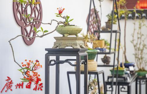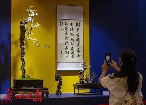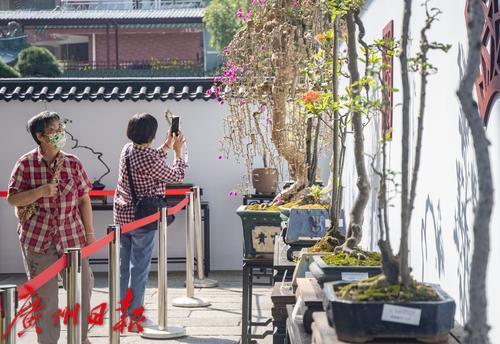 不少市民游客来到海幢寺观赏纳自然之美于方寸之间的盆景艺术。