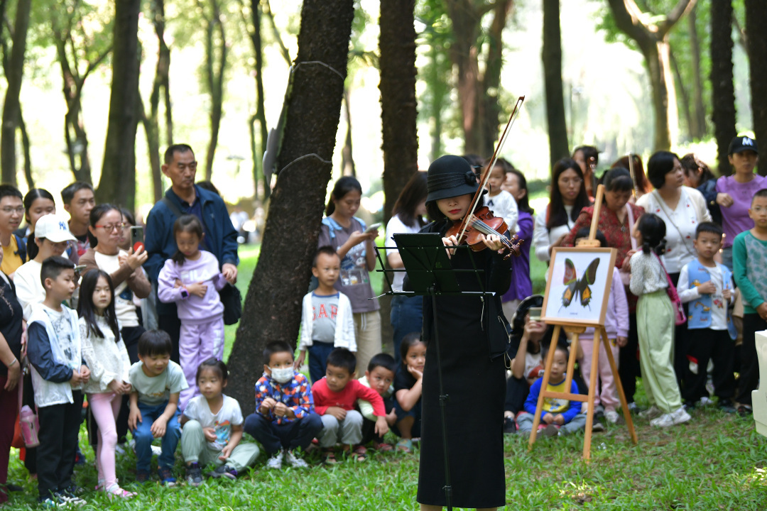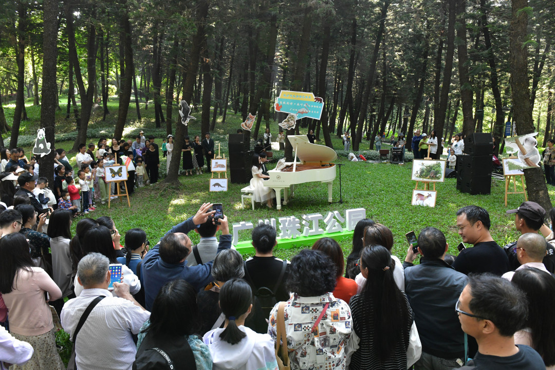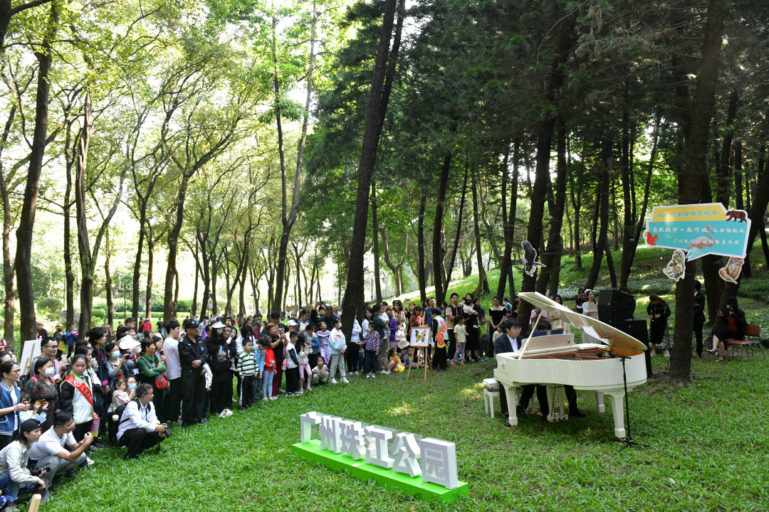 11月26日10时,珠江公园打造原生态+野性的音乐氛围,别开生面地举办“自然韵律·森呼吸”之动物狂欢森林钢琴音乐会,籍此宣传保护野生动物的公众意识,以自然美景与音乐魅力营造人与自然和谐共生的绿美意境。