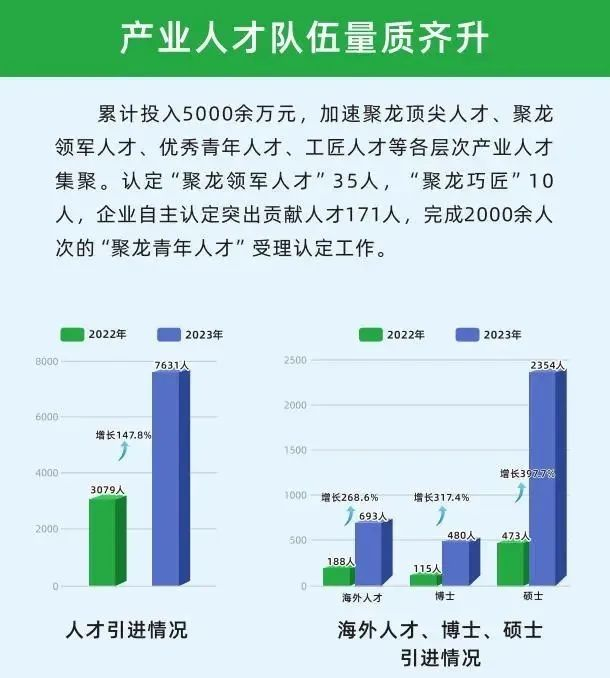 新政策实施一年以来,受理2000余名各类人才申请,产生首批次35名“聚龙领军人才”、10名“聚龙巧匠”,以及1000余名“聚龙青年人才”“聚龙工匠人才”和重点企业突出贡献人才。