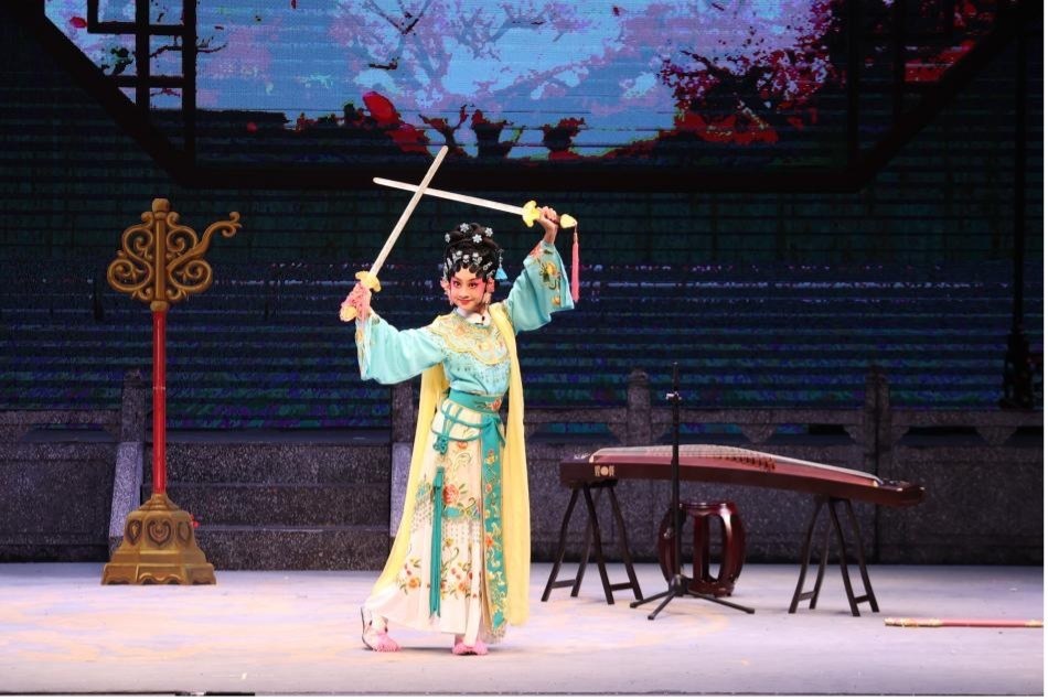 广州市荔湾区青少年宫一曲《琴瑟剑韵》,展现花旦“弹、唱、舞、念”合一的艺术功底。