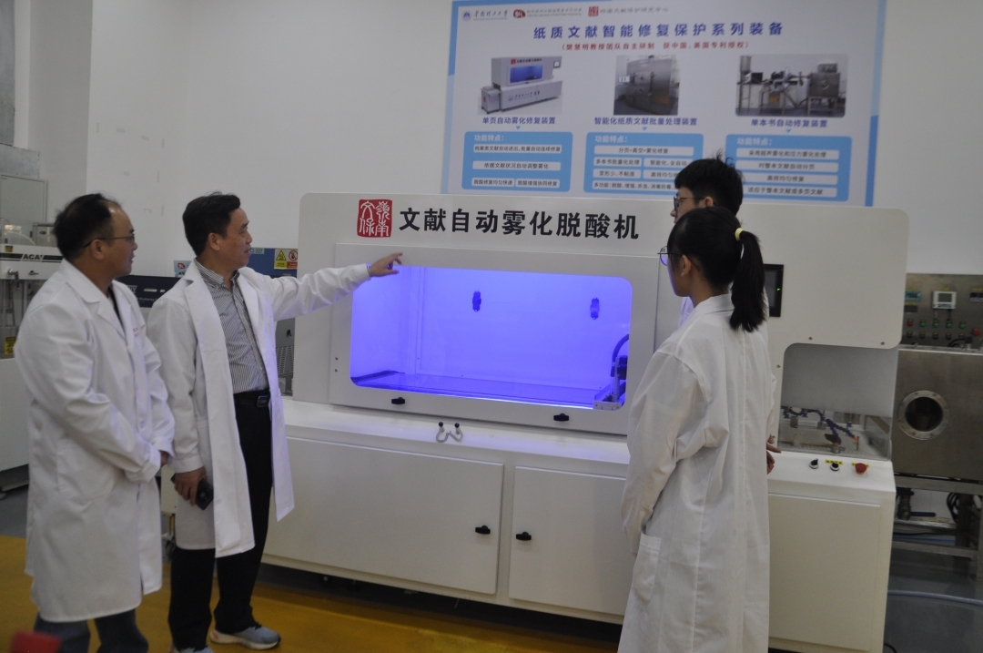记者了解到,该实验室是国家重点实验室,在全球造纸科技创新竞争力排行榜中一直稳居前三。实验室自建室起,面向我国文献保护创新技术需求,主攻纸质文献原生性保护对策、纸质文献利用技术服务、当代重要文献预防性保护对策三大方向,持续推动古籍保护关键技术突破和修复设备研发,获批全国科普教育基地、广东省广州市科普教育基地、“中华造纸术与文化”科普基地等。在这里,智能化古籍脱酸增强装置可以对整本古书进行脱酸加固处理,让面临风化消失风险的古籍“重获新生”。