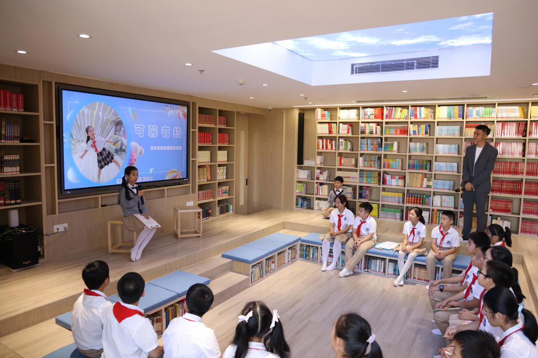 活动中,华南师范大学附属小学党总支书记、校长张锦庭介绍,华南师大附小已有“一湖五园八馆”的校园文化环境,为学生传承中华优秀传统文化提供了良好的条件和基础。他认为,图书馆建设应注重育人文化。附小图书馆面积约820平方米,藏书可达10万余册,囊括了学习区、藏书区、阅读室和电子书刊存放室等,旨在让学生以书为友,开阔眼界,增长知识,提高自我。他表示,此次开馆典礼是学校深化与广州市少儿图书馆合作的一个缩影,更是学校打造智慧阅读空间、促进学生智慧阅读的新起点。