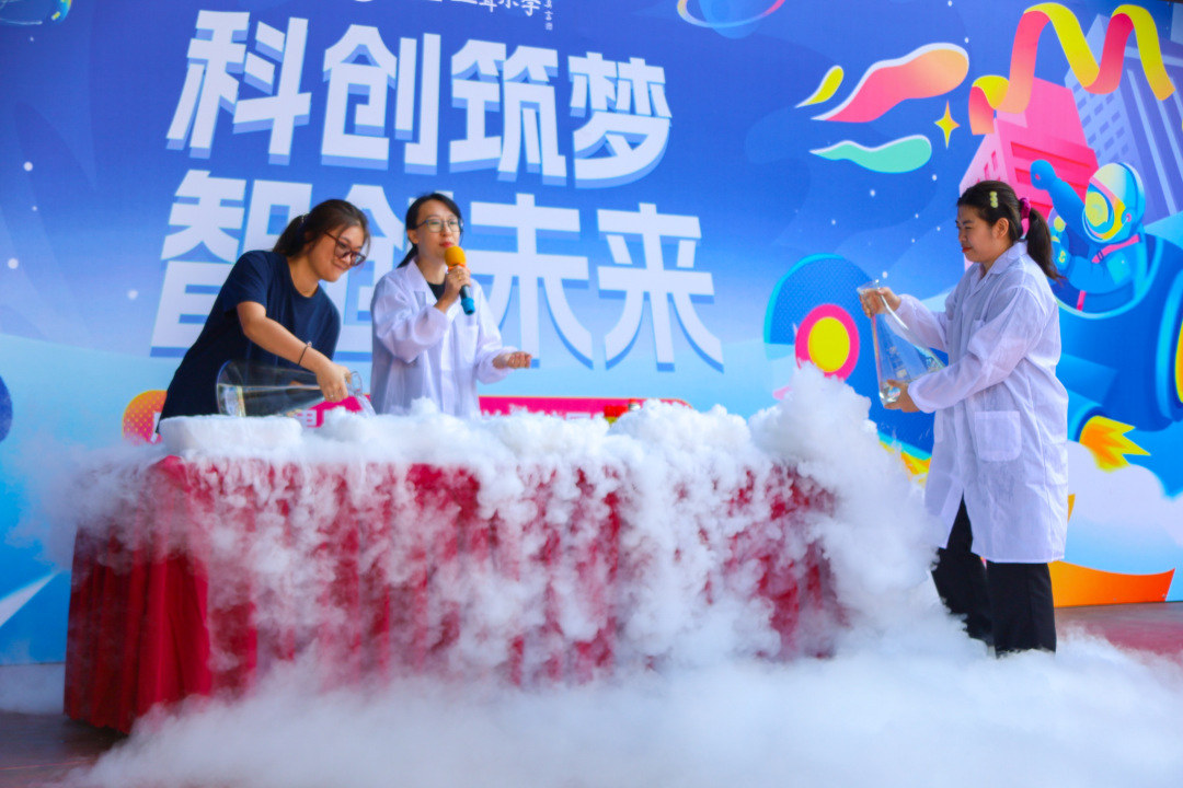 开幕式有学生主持人、学生科技感舞蹈、学生科学实验秀,嘉年华中更有学生小主播介绍每个科技项目。