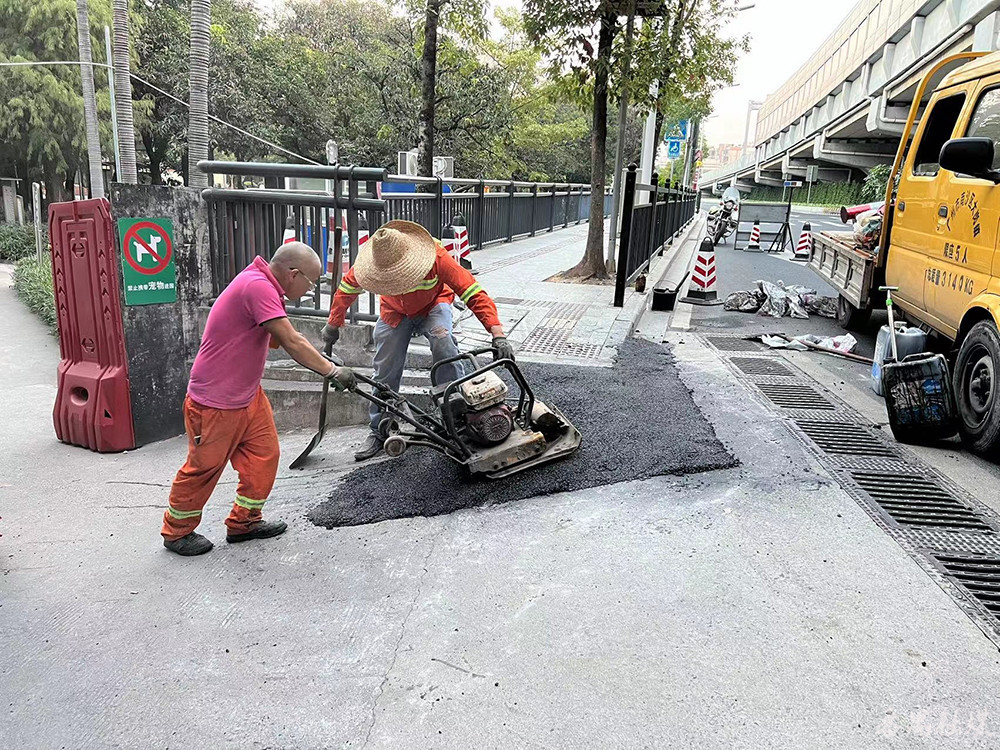 11月23日,洛浦街组织施工人员在洛浦路洛浦公园西门段开展无障碍设施改造工程,移除该路段的路肩、人行道面层步砖,将人行道平整到与车行道同一高度,并在上面铺设专用沥青,最后重新装上阻车桩,避免出现违停车辆占用通道的情况。本次改造严格按照无障碍标准进行整改,增加了出行便利性,降低了因高度差产生的交通安全事故风险系数,并减少社会车辆占用通道等情况。