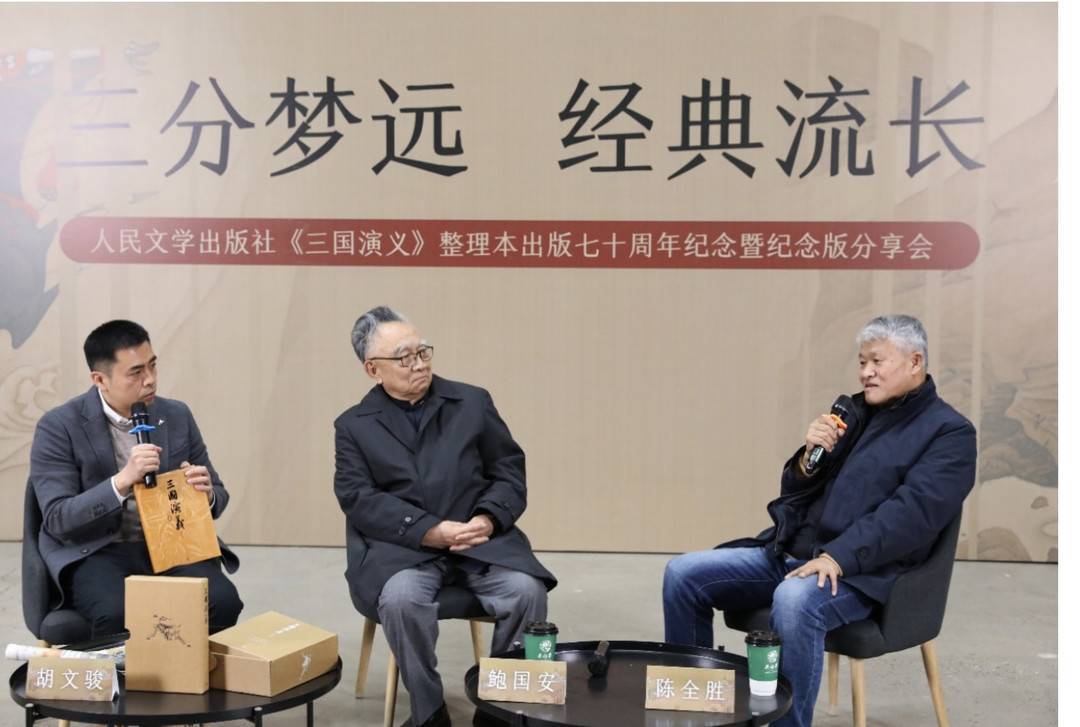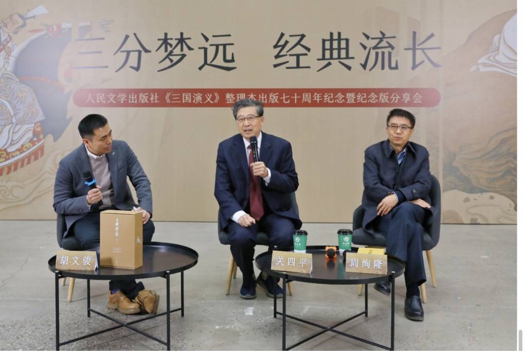 近日,人民文学出版社在北京红楼公共藏书楼举办了《三国演义》整理本出版七十周年纪念暨纪念版分享会,邀请中国三国演义学会会长、哈尔滨师范大学文学院教授关四平,清华大学人文学院教授周绚隆,山东省文艺创作研究院研究员、画家陈全胜,国家一级演员、中央戏剧学院教授鲍国安,共聚一堂,回顾出版历程,分享阅读记忆,漫谈“三国”文化,致敬为传播经典付出辛劳的前辈学人,引导大众品读优秀传统文化经典。