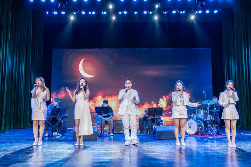 在篇章一“风起岭南”中,星众人声乐团以阿卡贝拉的形式,演绎了由著名音乐人李海鹰作词作曲的《弯弯的月亮》,用这首不朽金曲拉开了悦享会的帷幕。