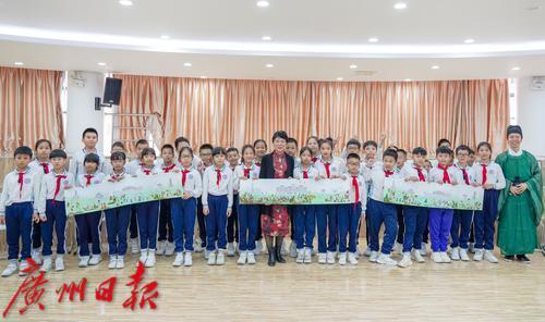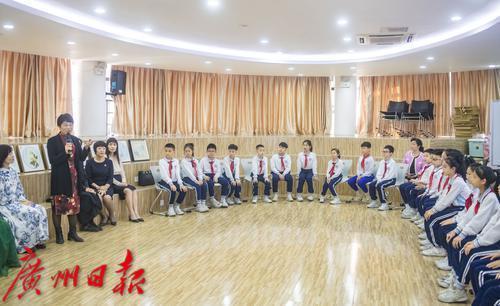 岭南押花艺术的首位代表性传承人、广州市工艺美术大师、高级工艺美术师傅庆军与沙面小学的学生交流。