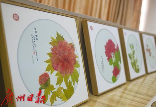 现场展示的岭南押花艺术作品。