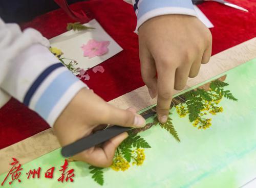 沙面小学的学生在认真创作押花作品。