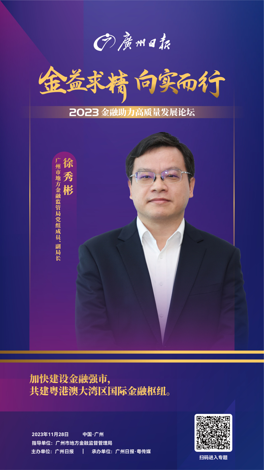 “今年以来,广州市金融系统深刻把握金融工作的政治性、人民性,按照省委‘1310’具体部署和市委‘1312’思路举措,大力提升金融服务实体经济质效和水平,有效防控金融风险,金融业支柱地位进一步凸显,对经济社会发展贡献度不断提升。“广州市地方金融监管局副局长徐秀彬在致辞时表示。