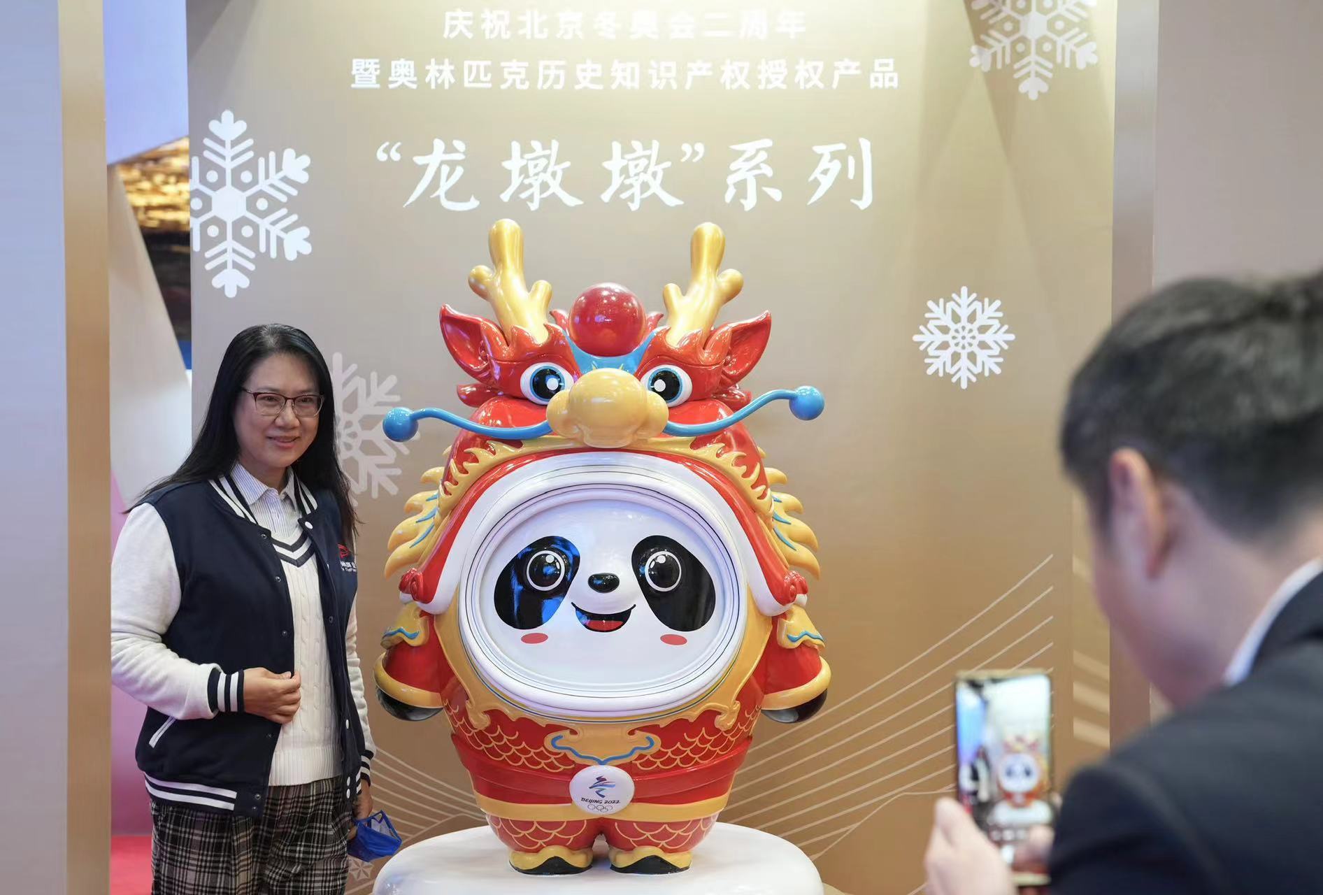 北京冬奥会期间,吉祥物“冰墩墩”火遍全球,成为顶流。去年,兔年特别版“兔墩墩”一经推出再受追捧。又一个冬季到来之时,“冰墩墩”身披“龙年战袍”,以崭新的形象再次归来,这是庆祝北京冬奥会成功举办两周年,也是对日益临近的农历龙年送出新春的祝福。