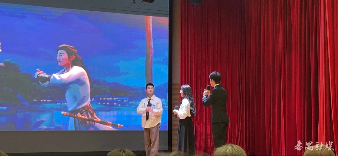 比赛中,番禺区图书馆推送的队伍“配音超能战队”演绎了《长安三万里》选段,选手们以生动的语音语调、流利的英语对白为经典中国电影片段配音赋能。通过默契的团队配合,给观众带来了一场极具表现力与张力的听觉盛宴。他们用声音演绎电影艺术,用情感讲述中国故事,充分展示了自身优秀的外语能力与配音艺术的魅力,赢得了现场观众的阵阵掌声。