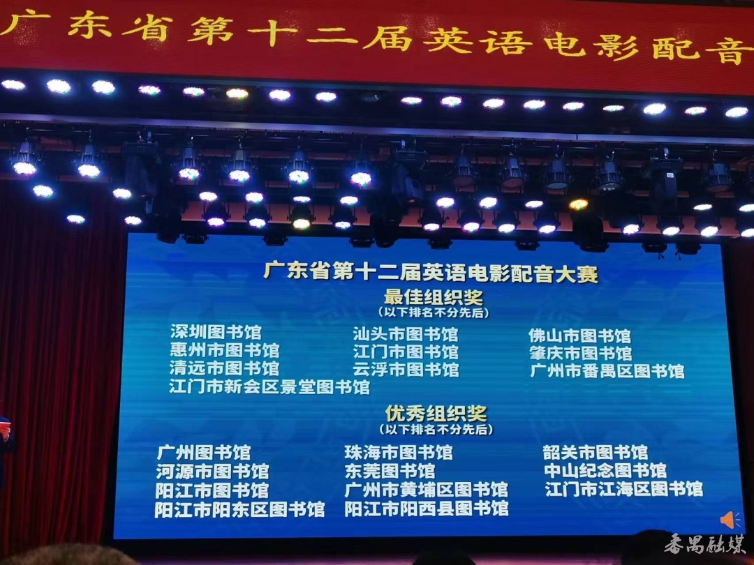 总决赛邀请了省内高校外语专家、资深英语口语教师、知名主持人等担任评委,从作品演绎、角色分配、情感呈现、语音语调等方面进行评审并作现场点评。评委从主题内容、语音语调、剧情表现、团队协作、形象举止五个方面综合评审,现场评审出金星作品1名,银星作品5名,铜星作品8名,优秀作品11名,最佳组织单位10名,优秀组织单位11名。番禺区图书馆推送的队伍“配音超能战队”凭借演绎《长安三万里》片段获“铜星作品”称号。番禺区图书馆获最佳组织单位奖,成为广东省两个获得此项殊荣的区县级图书馆之一。