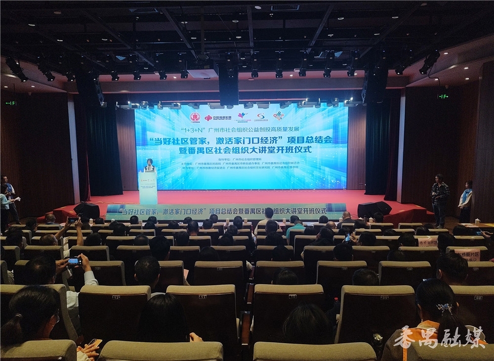 11月27日,番禺区民政局、市桥街道办事处、区社会组织联合会联合举行“当好社区管家·激活家门口经济”项目总结会暨番禺区社会组织大讲堂开班仪式。市社会组织管理局副局长胡凌,副区长郭洪杰,区政协副主席周建中,区民政局局长朱国华、市桥街道办事处主任许东雨,以及16个镇(街)负责人、村(居)党(委)支部书记代表,社会组织和志愿者代表等200多人参加了活动。