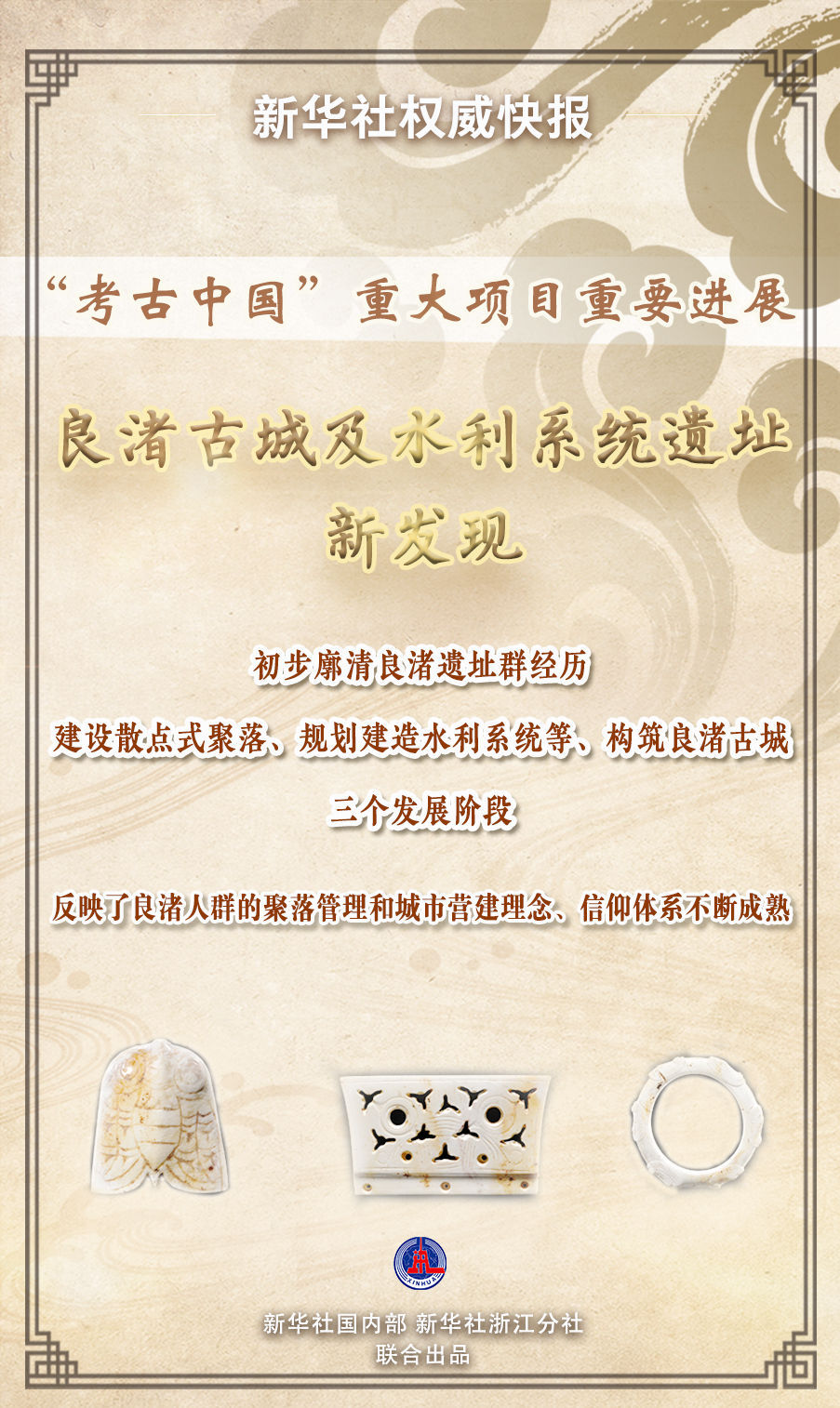 良渚古城及水利系统遗址新发现初步廓清了良渚遗址群经历了利用山前地貌建设散点式聚落,到规划建造水利系统、莫角山和反山,再到构筑带有城墙、外郭的良渚古城等三个发展阶段。