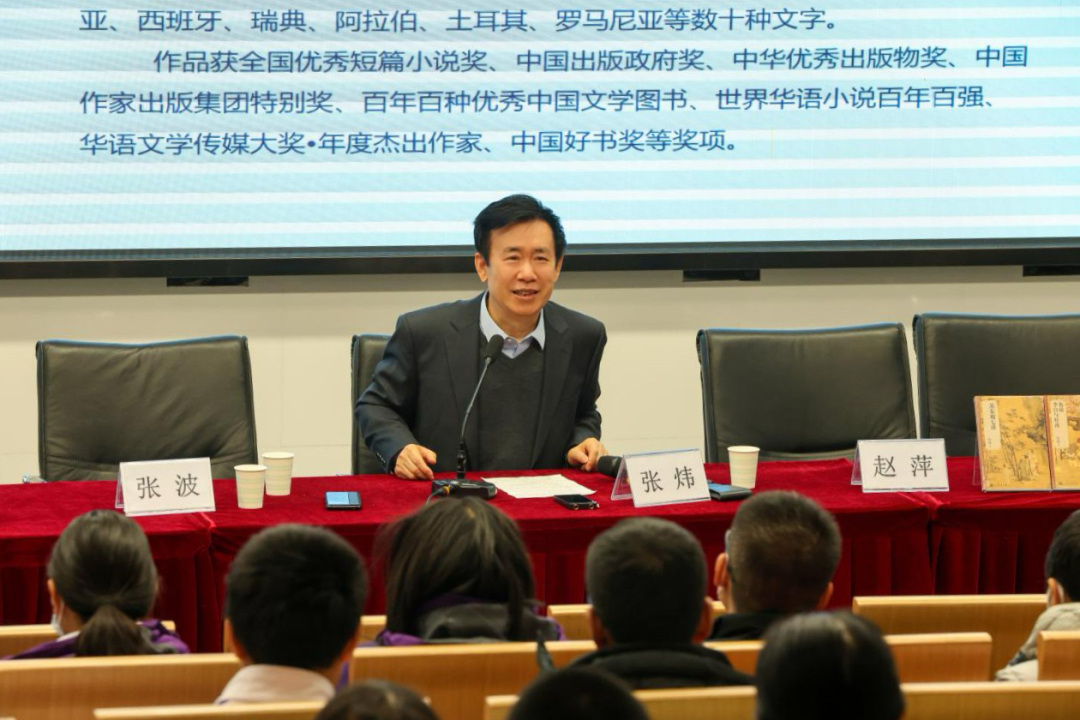 讲座伊始,清华大学附属中学上地学校副校长张波致欢迎词。阐述了学校“以育人为中心,以学生为主体,为了每一个学生个性自由而全面发展”的办学理念和“坚持全面发展,注重个性培养,展现学生特长”的办学特色。期待未来与人民文学出版社携手开展更多的名家进校园等系列活动,丰富学校教学形式,增广学生见闻。