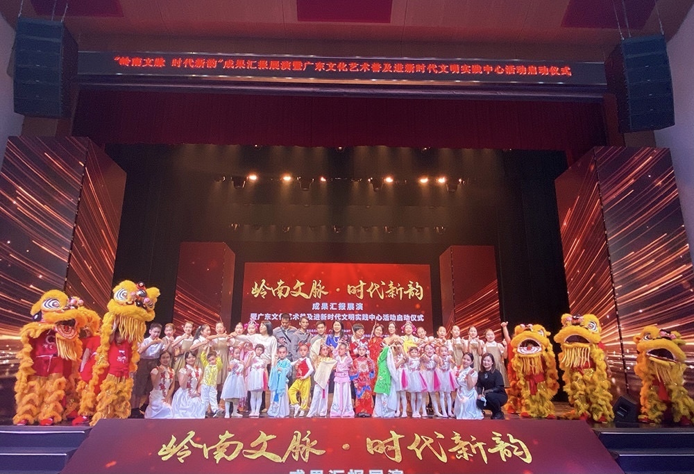 “青砖雕塑鲁班传说,醒狮醒了唱唱童谣,鲮鱼摇摆水色灿烂,远远看到满街多欢笑……” 11月26日,广东省文化馆内飘荡着旋律动听的童谣,由广东省精神文明建设委员会办公室、广东省文化和旅游厅指导,广东省文化馆主办的“岭南文脉 时代新韵”成果汇报展示展演暨“岭南文脉 薪火相传”广东文化艺术普及进新时代文明实践中心活动启动仪式在这里举行。番禺区沙湾原创非遗童谣《非遗心 少年梦》应邀参展,歌声清澈纯真、舞台灵动活泼,孩子们的精彩演出赢得现场阵阵掌声。