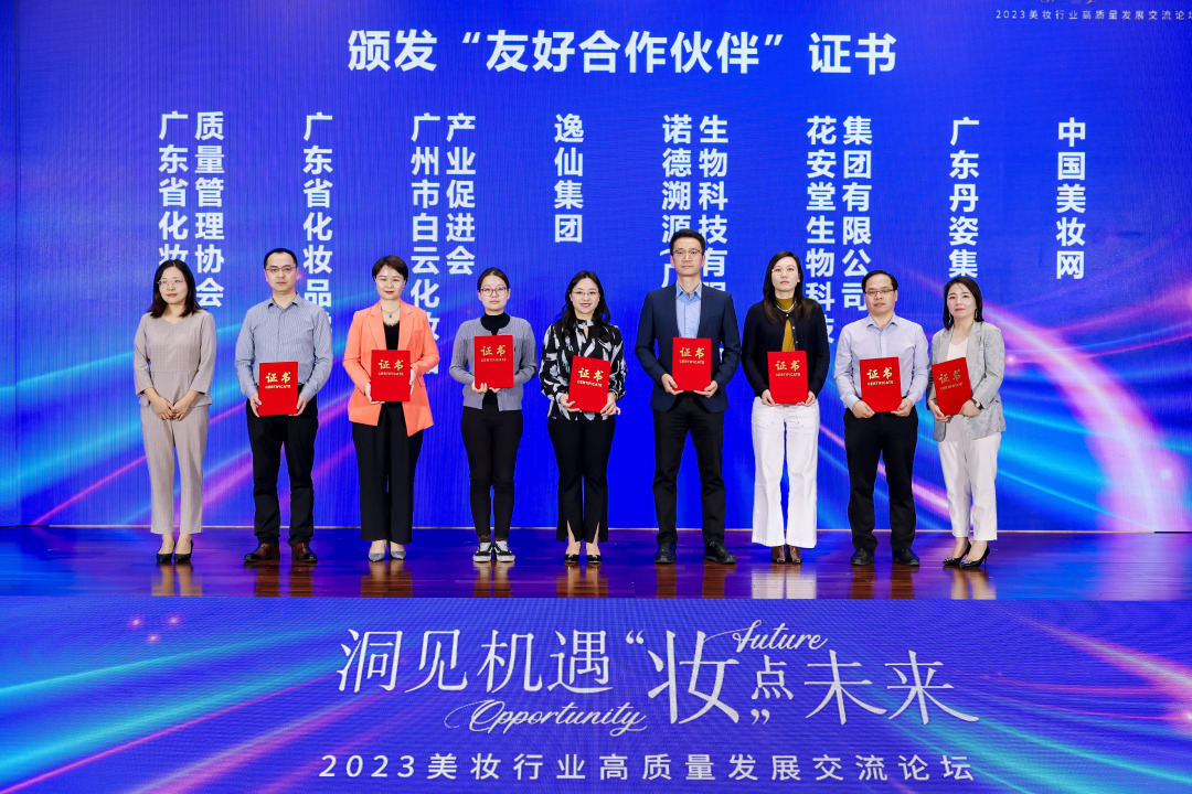 圆桌会议结束后,广州日报·粤传媒现场颁发了2023年度《媒体友好合作伙伴》证书。席间,除特邀嘉宾参与圆桌论坛外,还有广州市白云化妆品产业促进会、阿道夫、谷雨、韩后、美尚集团、海龟爸爸、HFP等单位和企业代表与会见证。