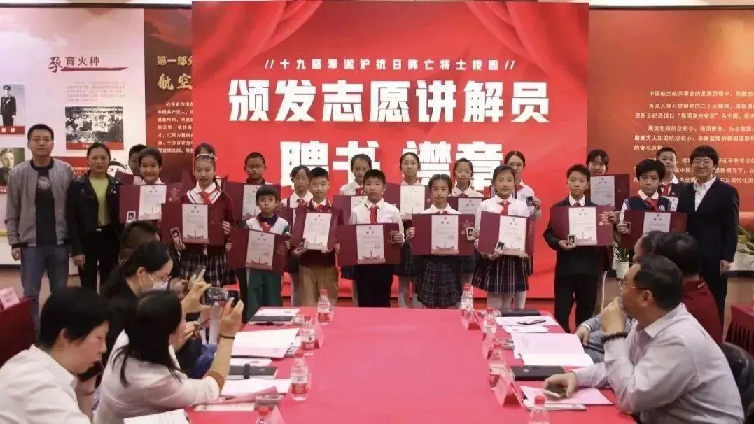 授聘仪式上,陵园管理中心为脱颖而出的首批29名优秀志愿讲解员代表颁发聘书,激励孩子们弘扬志愿服务精神、讲好红色故事、传承红色文化。来自水荫路小学的志愿讲解员代表袁子涵分享了积极参与志愿讲解服务的心得体会,并表示今后会更加努力地学习爱国将士的英雄故事,履行志愿讲解员的义务。