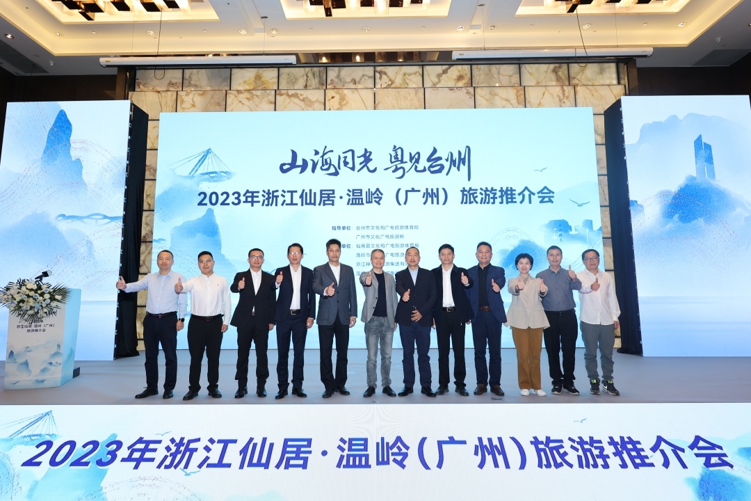 浙江省台州市在穗发布旅游新品。11月29日下午,仙居县文化和广电旅游体育局、温岭市文化和广电旅游体育局、浙江神仙居旅游集团有限公司、温岭市交通旅游集团有限公司共同主办的“山海同光粤见台州”2023浙江仙居·温岭旅游推介会在广州举行。来自广州、台州两地文旅部门领导,两地重点旅行商、旅行社以及各界代表,共计100多人,齐聚一堂,叙友谊、谋合作、促发展。