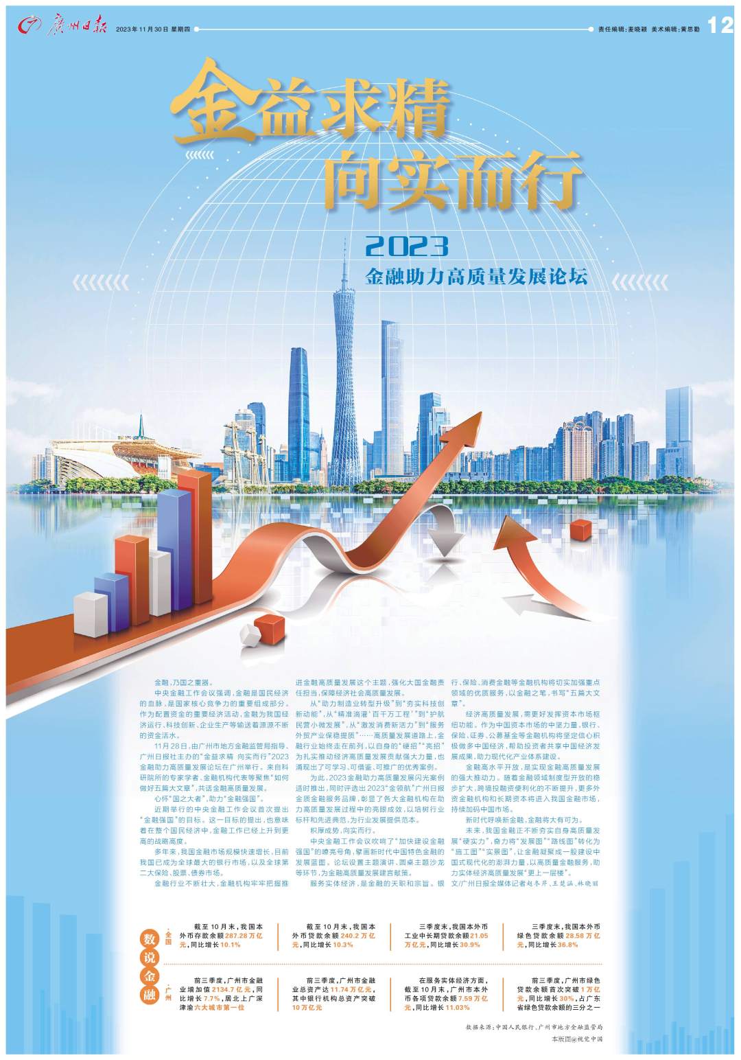 11月28日,由广州市地方金融监管局指导、广州日报社主办的“金益求精 向实而行”2023金融助力高质量发展论坛在广州举行。来自科研院所的专家学者、金融机构代表等聚焦“如何做好五篇大文章”,共话金融高质量发展。