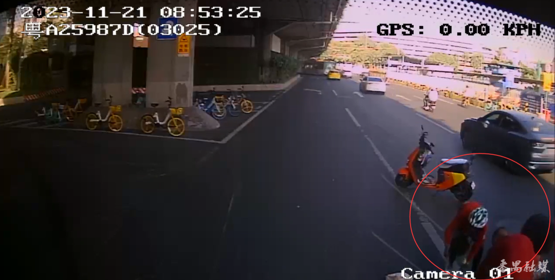 黄泳生协助车主扶起电动车(视频截图)
