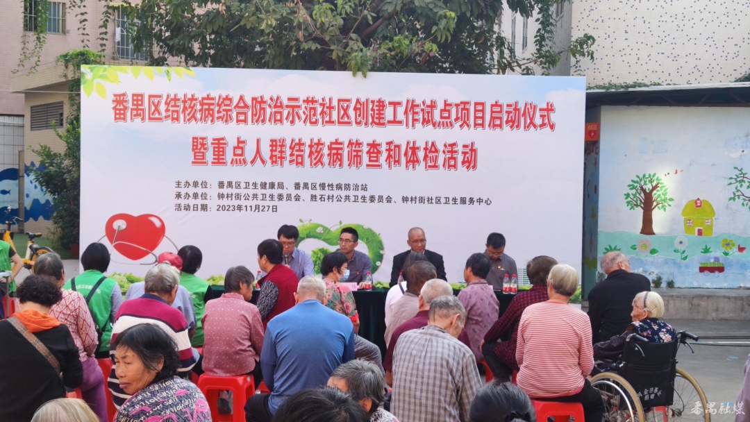 11月27日上午,番禺区结核病综合防治示范社区创建工作试点项目启动仪式暨重点人群结核病筛查活动在钟村街胜石村进行。区公共卫生委员会办公室、区慢性病防治站、钟村街公共卫生委员会、钟村街社区卫生服务中心有关领导出席活动并致辞。
