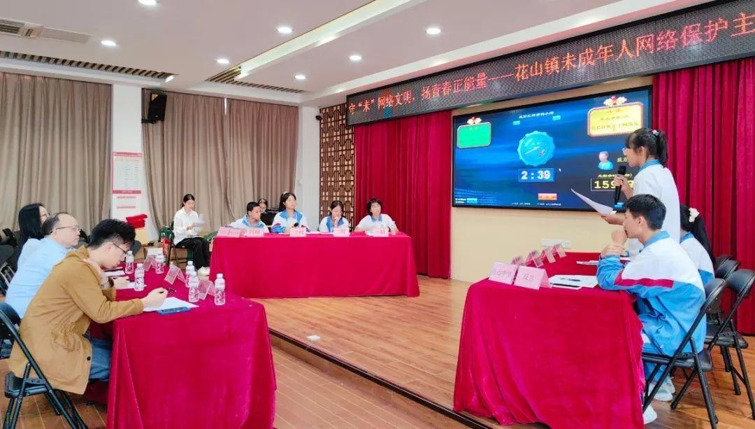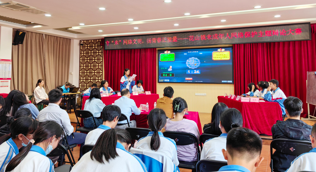 该活动由花都区花山镇“扫黄打非”办联合镇未成年人保护站、镇社工服务站、镇司法所、广东益航律师事务所、广州工商学院辩论队、镇综治办等单位开展,是一种创新“扫黄打非”宣传形式。通过不断增强同学们对“扫黄打非·净网”行动的认识,倡导共同营造清朗网络空间,进一步护卫青少年健康成长。活动邀请花山中学、华侨中学、新蓝天学校等师生60余人参加,4支队伍20位选手进入决赛。