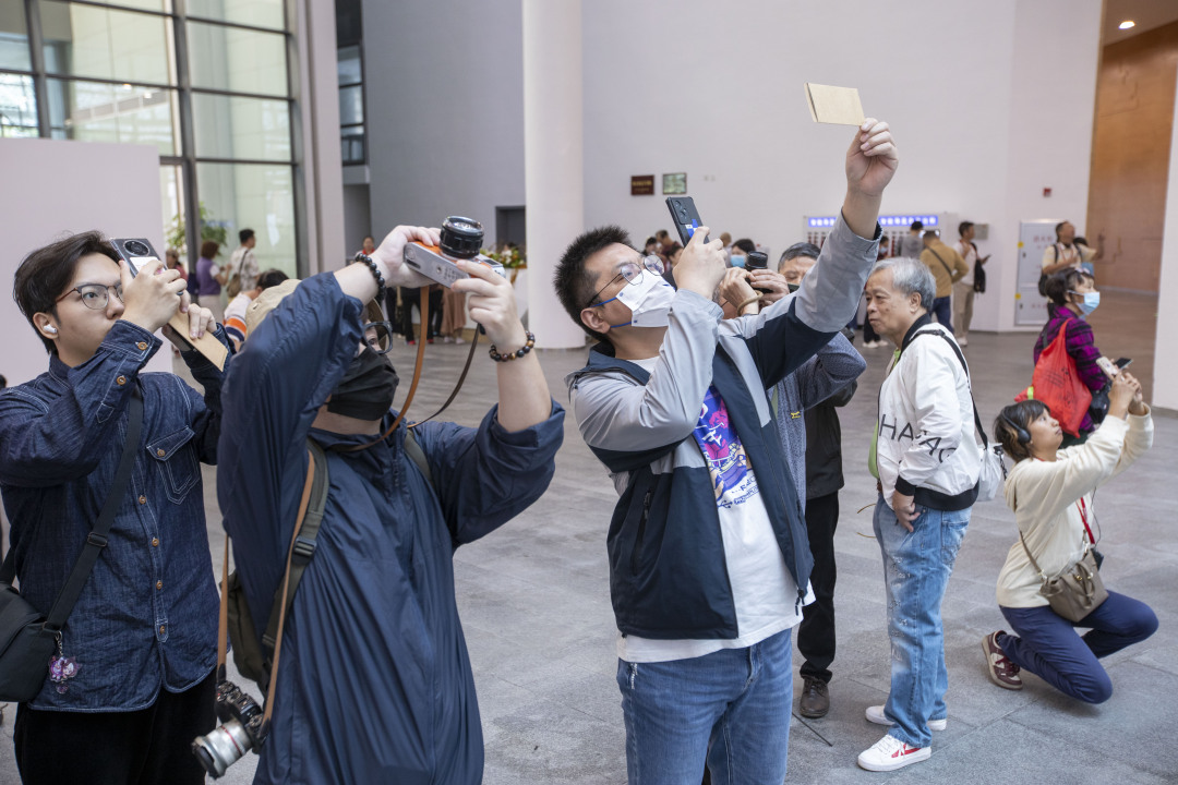 “我就是想第一时间来看。”观众郭女士对于能够在开放首日进馆非常兴奋。她住在白云区,早上7点多坐车赶过来,她告诉记者,“我比较喜欢国画,一楼国画的展厅很好看。”虽然一直关注着开馆信息,但她此前并没能抢到首日的预约名额,“昨晚12点,我进预约系统想看看还能不能‘捡漏’,刚好看到放出了今天学术论坛活动的预约信息,预约论坛就可以进馆了。”除了看展,她对上午的学术论坛活动也非常期待。她也希望之后有机会看到晚上的美术馆,“晚上亮灯之后感觉会更震撼。”
