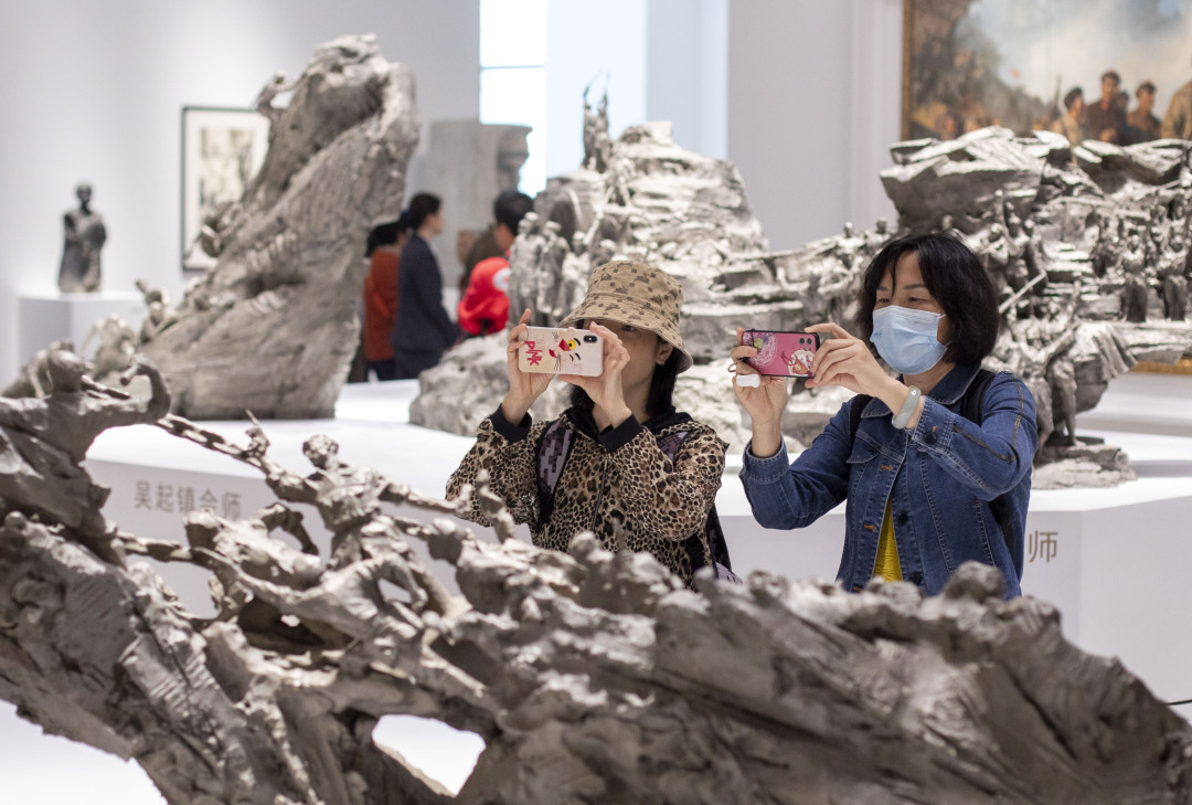 “第一天会比较有新鲜感。”观众高女士表示。此前麓湖旁的广州艺术博物院旧馆快要闭馆时,她就专程去看了。她认为新馆的整体形象升级了很多,贴近时代,艺术氛围也升级了不少,“我觉得长征历史的展览很不错,让市民能够感受到红色文化的延续。”