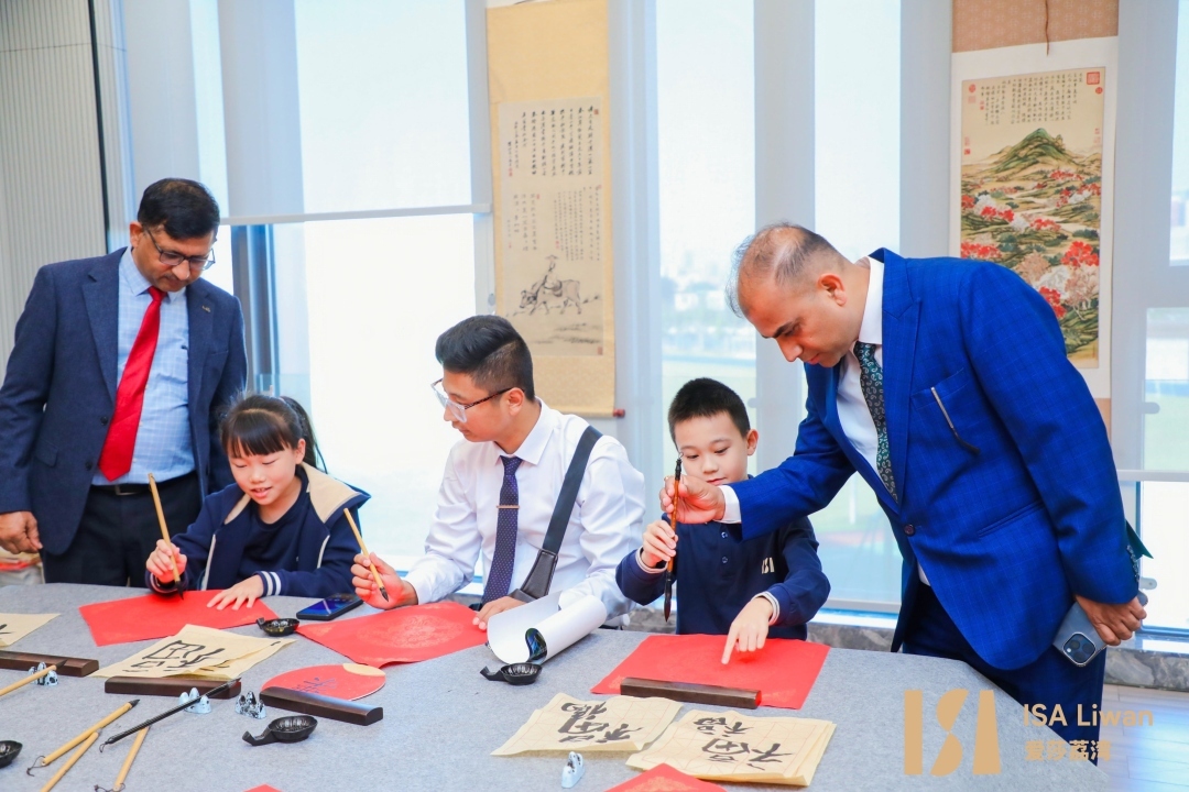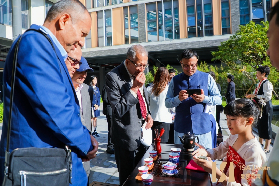 在荔湾爱莎学生全英文的讲解和引领下,考察团先后在校园里体验了由荔湾区康有为纪念小学、詹天佑小学和爱莎学校学生呈现的中国茶艺、粤剧及书法文化,感受中国中小学生在科技创新的风采。